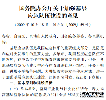國(guó)務(wù)院辦公廳關(guān)于加強(qiáng)基層 應(yīng)急隊(duì)伍建設(shè)的意見