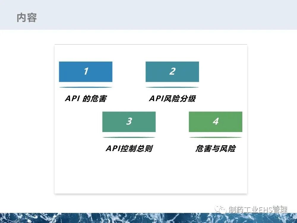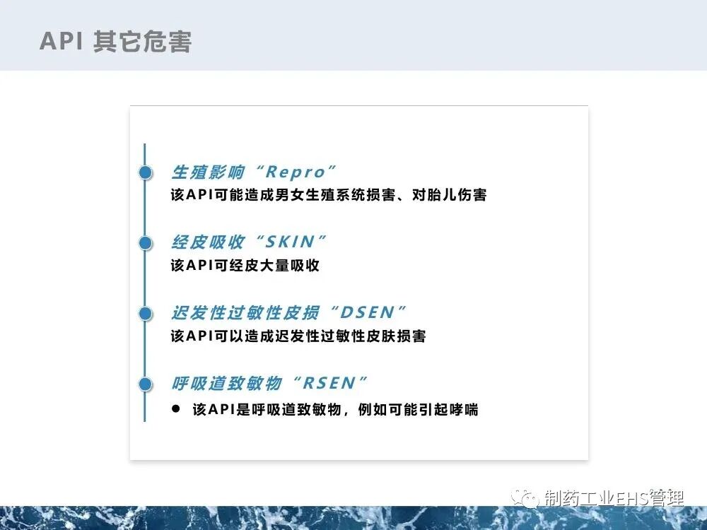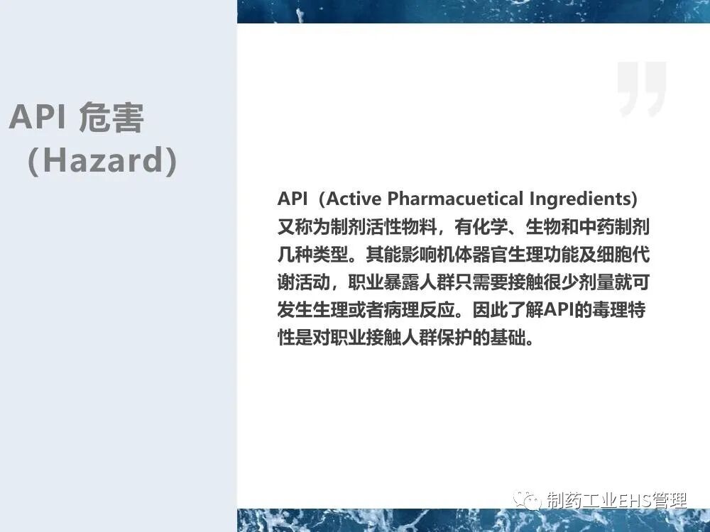 下面通過API的危害分析,給出了職業(yè)接觸限值(OEL)計算公式,介紹了API危害分級系統(tǒng)PBOEL,針對性地提出了防控措施應當遵循的總則。后續(xù)還將深入分析管控策略,敬請期待!