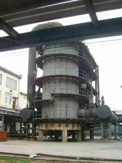焦爐機側備煤車間來的洗精煤——輸煤棧橋運入煤塔——裝煤車行至煤塔下方,——搖動給料機均勻逐層給料——21錘固定搗固機分層搗實,——搗好的煤餅——從機側裝入炭化室——在950~1050℃的溫度下高溫干餾, ~22.5小時后——成熟的焦炭被推焦車經攔焦車導焦柵——推出落入熄焦車內——送至熄焦塔用水噴灑熄焦——由熄焦車送至涼焦臺——補充熄焦、涼焦后,由刮板放焦機——放至皮帶送焦場。熄焦塔處設光電自動控制器, 通過控制器中的時間繼電器調整噴灑時間, 保證紅焦熄滅。 干餾過程中產生的荒煤氣經炭化室頂部、上升管、橋管——入集氣管。在橋管和集氣管處用壓力為~0.3MPa,溫度為~78℃的循環(huán)氨水噴灑冷卻,使~700℃的荒煤氣冷卻至84℃左右,再經吸氣彎管和吸氣管抽吸至冷鼓工段。在集氣管內冷凝下來的焦油和氨水經焦油盒、吸氣主管一起至冷鼓工段。 焦炭在煉鐵中的作用:骨架作用、提供熱源、還原劑、滲碳劑。 煉焦工段來的焦油氨水與煤氣的混合物約80℃——氣液分離器,分離煤氣與焦油氨水——粗煤氣進入橫管式初冷器,初冷器分上、下兩段,在上段,用23℃化產循環(huán)水將煤氣冷卻到45℃,化產循環(huán)水升溫到40℃——然后煤氣入初冷器下段與16℃制冷水換熱,煤氣被冷卻到22℃制冷水升溫到23℃——冷卻后的煤氣進入煤氣鼓風機進行加壓——加壓后煤氣進入電捕焦油器,捕集焦油霧滴后的煤氣——送往脫硫及硫回收工段。 初冷器的煤氣冷凝液由初冷器上段和下段分別流出——分別進入各自的冷凝液循環(huán)槽,由冷凝液循環(huán)泵送至初冷器上下段噴淋,如此循環(huán)使用,多余部分由泵抽送至機械化氨水澄清槽。 從氣液分離器分離的焦油氨水與焦油渣去機械化氨水澄清槽。澄清后分離成三層,上層為氨水,中層為焦油,下層為焦油渣。氨水——循環(huán)氨水槽,然后用循環(huán)氨水泵送至煉焦車間冷卻荒煤氣及初冷器上段和電捕焦油器間斷吹掃噴淋使用。多余的氨水去剩余氨水槽,用剩余氨水泵送至脫硫工段進行蒸氨。焦油——焦油中間槽貯存,當達到一定液位時,用焦油泵將其送至焦油槽, 焦油需外售時, 用焦油泵送往焦油槽車外售。 來自冷鼓工段的粗煤氣進入脫硫塔下部與塔頂噴淋下來的脫硫液逆流接觸洗滌后,煤氣中H2S含量小于0.2g/Nm3,煤氣經捕霧段除去霧滴后全部送至硫銨工段。 從脫硫塔中吸收了H2S和HCN的脫硫液至溶液循環(huán)槽,用溶液循環(huán)泵抽送至再生塔下部與空壓站來的壓縮空氣并流再生,再生后的脫硫液返回脫硫塔塔頂循環(huán)噴淋脫硫。硫泡沫則由再生塔頂部擴大部分排至硫泡沫槽,再由硫泡沫泵加壓后送至連續(xù)熔硫釜外售。 在脫硫塔中的主要反應為:H2S+2NH3=(NH4)2S 由冷鼓來的剩余氨水經與從蒸氨塔底來的蒸氨廢水在氨水換熱器換熱、加堿后,進入蒸氨塔。在蒸氨塔中被蒸汽直接蒸餾,蒸出的氨汽入氨分縮器用循環(huán)水冷卻,冷凝下來的液體入蒸氨塔頂作回流,未冷凝的含NH3(~10%)氨汽進入氨冷凝冷卻器,用制冷水冷凝成濃氨水送脫硫工段作為脫硫補充液。蒸氨塔塔底排出的蒸氨廢水在氨水換熱器中與剩余氨水換熱后,入廢水槽,然后與洗脫苯工段來的粗苯分離水一并由廢水泵加壓經廢水冷卻器用循環(huán)水冷卻后送生化處理。 沸騰干燥器所用的熱空氣,經熱風器加熱后送入。沸騰干燥器排出的廢氣經旋風除塵器捕集夾帶的細粒硫銨結晶后,由排風機抽送至霧膜水浴除塵器進行濕式再除塵,最后排入大氣。硫銨飽和器噴淋室溢流的母液入滿流槽,將少量的酸焦油分離,分離酸、焦油后的母液入母液貯槽,由小母液泵加壓后送噴淋室噴淋。外購來的硫酸卸至硫酸槽用硫酸泵送至硫酸高位槽,經控制流量自流入滿流槽,調節(jié)硫銨飽和器內溶液的酸度。飽和器法生產硫銨的主要反應有:2NH3+H2SO4=(NH4)2SO4 來自硫銨工段的粗煤氣, 經終冷塔上段的循環(huán)水和下段的制冷水換熱后,將煤氣由55?C降至23?C. 然后從洗苯塔底部入塔,由下而上經過洗苯塔填料層,與塔頂噴淋的循環(huán)洗油逆流接觸,煤氣中的苯被循環(huán)洗油吸收,再經過塔的捕霧段脫除霧滴后離開洗苯塔,其中一部分送焦爐做回爐煤氣、一部分送粗苯管式爐作燃料、一部分送制冷站作燃料、一部分送鍋爐房作燃料,剩余煤氣送氣柜加壓站,供居民用氣或工業(yè)用氣。 洗苯塔底富油由貧富油泵加壓后送至粗苯冷凝冷卻器,與脫苯塔塔頂出來的粗苯汽換熱,將富油預熱至60?C左右,然后至油油換熱器與脫苯塔底出來的熱貧油換熱,由60?C升到110?C左右,最后進入粗苯管式加熱爐被加熱至180?C左右,進入脫苯塔。從脫苯塔頂蒸出的粗苯油水混和汽進入粗苯冷凝冷卻器分別被從洗苯塔底來的富油和16?C制冷水冷卻至30?C左右,然后進入粗苯油水分離器進行分離,分離出的粗苯入粗苯回流槽,部分粗苯經粗苯回流泵送至脫苯塔塔頂作回流,其余部分送往粗苯貯槽,用粗苯輸送泵定期送粗苯計量槽外售。油水分離器分離出的油水混合物入控制分離器,在此分離出的洗油送入貧油槽,分離出的粗苯分離水送至脫硫工段,與蒸氨廢水一并送生化處理。脫苯后的熱貧油從脫苯塔底流出,自流入油油換熱器與富油換熱,使其溫度降至120?C左右,入貧油槽并由貧富油泵加壓送至一段貧油冷卻器和二段貧油冷卻器,分別被32?C循環(huán)水和16?C制冷水冷卻至約30?