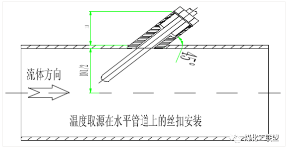 熱電偶、熱電阻、雙金屬溫度計(jì)在DN<80mm的管道上安裝。