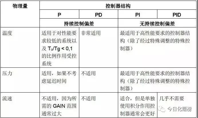 下表概述了控制器結(jié)構(gòu)與物理量的各種組合的適宜性。
