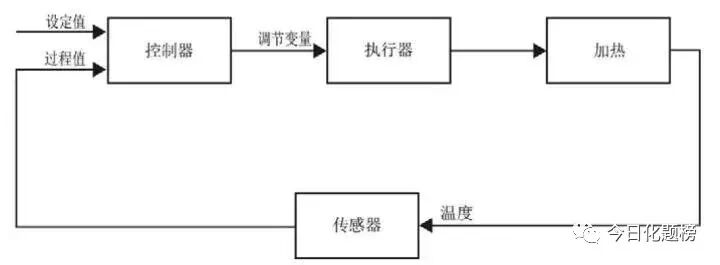 下面再舉個(gè)受控系統(tǒng)的一個(gè)簡單示例,說明通過加熱系統(tǒng)控制室溫的過程,是個(gè)自穩(wěn)定過程。傳感器測(cè)量室溫并將溫度值傳送給控制器??刂破鲗?dāng)前室溫與設(shè)定值進(jìn)行比較,并計(jì)算加熱控制的輸出值(調(diào)節(jié)變量)。