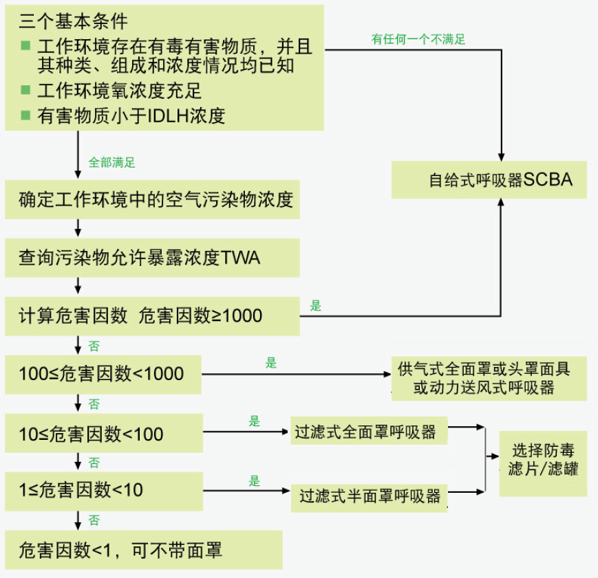 選擇合適的呼吸面罩 計(jì)算出工作場(chǎng)所的危害因數(shù)后,將此因數(shù)與各類呼吸面罩的指定防護(hù)系數(shù)APF對(duì)比,選擇指定防護(hù)系數(shù)APF>危害因數(shù)的呼吸面罩即可。