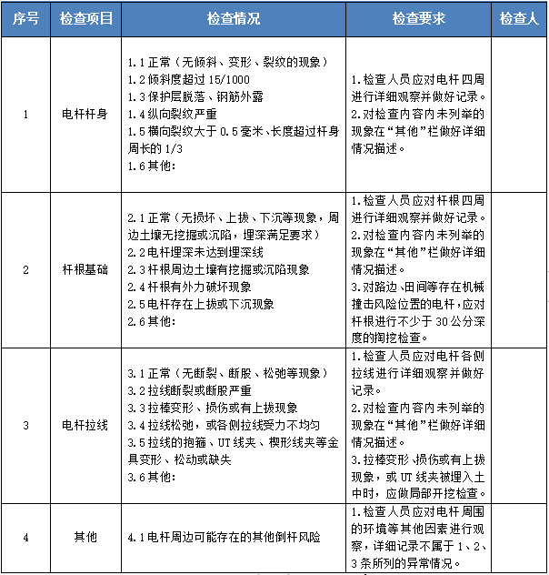 1.  現(xiàn)場勘察時必須逐基檢查桿基是否牢固,對路邊、田間等存在機械撞擊風險位置的電桿,應對桿根進行不少于30公分深度的掏挖檢查并做好記錄。