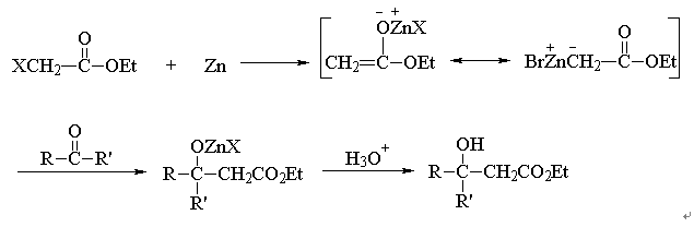 反應機理 過酸先與羰基進行親核加成,然后酮羰基上的一個烴基帶著一對電子遷移到-O-O-基團中與羰基碳原子直接相連的氧原子上,同時發(fā)生O-O鍵異裂。因此,這是一個重排反應 具有光學活性的3---苯基丁酮和過酸反應,重排產物手性碳原子的枸型保持不變,說明反應屬于分子內重排: 不對稱的酮氧化時,在重排步驟中,兩個基團均可遷移,但是還是有一定的選擇性,按遷移能力其順序為: 醛氧化的機理與此相似,但遷移的是氫負離子,得到羧酸。 反應實例 酮類化合物用過酸如過氧乙酸、過氧苯甲酸、間氯過氧苯甲酸或三氟過氧乙酸等氧化,可在羰基旁邊插入一個氧原子生成相應的酯,其中三氟過氧乙酸是最好的氧化劑。這類氧化劑的特點是反應速率快,反應溫度一般在10~40℃之間,產率高。 Beckmann 重排反應 肟在酸如硫酸、多聚磷酸以及能產生強酸的五氯化磷、三氯化磷、苯磺酰氯、亞硫酰氯等作用下發(fā)生重排,生成相應的取代酰胺,如環(huán)己酮肟在硫酸作用下重排生成己內酰胺: 反應機理 在酸作用下,肟首先發(fā)生質子化,然后脫去一分子水,同時與羥基處于反位的基團遷移到缺電子的氮原子上,所形成的碳正離子與水反應得到酰胺。 遷移基團如果是手性碳原子,則在遷移前后其構型不變,例如: 反應實例 Cannizzaro 反應 凡α位碳原子上無活潑氫的醛類和濃NaOH或KOH水或醇溶液作用時,不發(fā)生醇醛縮合或樹脂化作用而起歧化反應生成與醛相當?shù)乃?成鹽)及醇的混合物。此反應的特征是醛自身同時發(fā)生氧化及還原作用,一分子被氧化成酸的鹽,另一分子被還原成醇: 脂肪醛中,只有甲醛和與羰基相連的是一個叔碳原子的醛類,才會發(fā)生此反應,其他醛類與強堿液,作用發(fā)生醇醛縮合或進一步變成樹脂狀物質。 具有α-活潑氫原子的醛和甲醛首先發(fā)生羥醛縮合反應,得到無α-活潑氫原子的β-羥基醛,然后再與甲醛進行交叉Cannizzaro反應,如乙醛和甲醛反應得到季戊四醇: 反應機理 醛首先和氫氧根負離子進行親核加成得到負離子,然后碳上的氫帶著一對電子以氫負離子的形式轉移到另一分子的羰基不能碳原子上。 反應實例 Claisen酯縮合反應 含有α-氫的酯在醇鈉等堿性縮合劑作用下發(fā)生縮合作用,失去一分子醇得到β-酮酸酯。如2分子乙酸乙酯在金屬鈉和少量乙醇作用下發(fā)生縮合得到乙酰乙酸乙酯。 二元羧酸酯的分子內酯縮合見Dieckmann縮合反應。 反應機理 乙酸乙酯的α-氫酸性很弱(pKa-24.5),而乙醇鈉又是一個相對較弱的堿(乙醇的pKa~15.9),因此,乙酸乙酯與乙醇鈉作用所形成的負離子在平衡體系是很少的。但由于最后產物乙酰乙酸乙酯是一個比較強的酸,能與乙醇鈉作用形成穩(wěn)定的負離子,從而使平衡朝產物方向移動。所以,盡管反應體系中的乙酸乙酯負離子濃度很低,但一形成后,就不斷地反應,結果反應還是可以順利完成。 常用的堿性縮合劑除乙醇鈉外,還有叔丁醇鉀、叔丁醇鈉、氫化鉀、氫化鈉、三苯甲基鈉、二異丙氨基鋰(LDA)和Grignard試劑等。 反應實例 如果酯的α-碳上只有一個氫原子,由于酸性太弱,用乙醇鈉難于形成負離子,需要用較強的堿才能把酯變?yōu)樨撾x子。如異丁酸乙酯在三苯甲基鈉作用下,可以進行縮合,而在乙醇鈉作用下則不能發(fā)生反應: 兩種不同的酯也能發(fā)生酯縮合,理論上可得到四種不同的產物,稱為混合酯縮合,在制備上沒有太大意義。如果其中一個酯分子中既無α-氫原子,而且烷氧羰基又比較活潑時,則僅生成一種縮合產物。如苯甲酸酯、甲酸酯、草酸酯、碳酸酯等。與其它含α-氫原子的酯反應時,都只生成一種縮合產物。 實際上這個反應不限于酯類自身的縮合,酯與含活潑亞甲基的化合物都可以發(fā)生這樣的縮合反應,這個反應可以用下列通式表示: Claisen—Schmidt 反應 一個無α-氫原子的醛與一個帶有α-氫原子的脂肪族醛或酮在稀氫氧化鈉水溶液或醇溶液存在下發(fā)生縮合反應,并失水得到α,β-不飽和醛或酮: 反應機理 反應實例 Claisen 重排 烯丙基芳基醚在高溫(200°C)下可以重排,生成烯丙基酚。 當烯丙基芳基醚的兩個鄰位未被取代基占滿時,重排主要得到鄰位產物,兩個鄰位均被取代基占據(jù)時,重排得到對位產物。對位、鄰位均被占滿時不發(fā)生此類重排反應。 交叉反應實驗證明:Claisen重排是分子內的重排。采用 g-碳 14C標記的烯丙基醚進行重排,重排后 g-碳原子與苯環(huán)相連,碳碳雙鍵發(fā)生位移。兩個鄰位都被取代的芳基烯丙基酚,重排后則仍是a-碳原子與苯環(huán)相連。 反應機理 Claisen 重排是個協(xié)同反應,中間經過一個環(huán)狀過渡態(tài),所以芳環(huán)上取代基的電子效應對重排無影響。 從烯丙基芳基醚重排為鄰烯丙基酚經過一次[3,3]s遷移和一次由酮式到烯醇式的互變異構;兩個鄰位都被取代基占據(jù)的烯丙基芳基酚重排時先經過一次[3,3]s 遷移到鄰位(Claisen 重排),由于鄰位已被取代基占據(jù),無法發(fā)生互變異構,接著又發(fā)生一次[3,3]s 遷移(Cope重排)到對位,然后經互變異構得到對位烯丙基酚。 取代的烯丙基芳基醚重排時,無論原來的烯丙基雙鍵是Z-構型還是E-構型,重排后的新雙鍵的構型都是E-型(反式),這是因為重排反應所經過的六員環(huán)狀過渡態(tài)具有穩(wěn)定椅式構象的緣故。 反應實例 Claisen 重排具有普遍性,在醚類化合物中,如果存在烯丙氧基