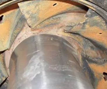 壓出室中蝸殼隔舌和導(dǎo)葉的靠近進(jìn)口邊緣低壓側(cè);