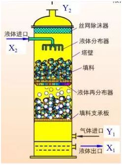填料塔屬于連續(xù)接觸式氣液傳質(zhì)設(shè)備,兩相組成沿塔高連續(xù)變化,在正常操作狀態(tài)下,氣相為連續(xù)相,液相為分散相。