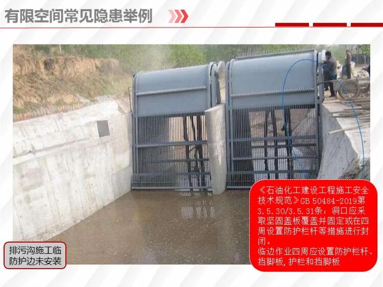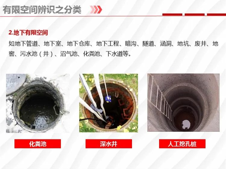什么是有限空間? 有限空間是指,封閉或者部分封閉,與外界相對隔離,出入口較為狹窄,作業(yè)人員不能長時間在內(nèi)工作,自然通風(fēng)不良,易造成有毒有害、易燃易爆物質(zhì)積聚或者氧含量不足的空間。 有限空間長啥樣? 還有 還有 還有……