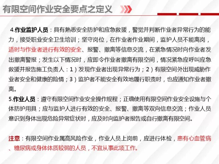 有限空間正確打開方式 1.嚴(yán)格執(zhí)行“先通風(fēng)、再檢測、后作業(yè)”的原則 未經(jīng)通風(fēng)和檢測,嚴(yán)禁作業(yè)人員進入有限空間作業(yè)。而且,工作環(huán)境發(fā)生變化時,應(yīng)視為進入新的有限空間,重新通風(fēng)和檢測后方可進入。同時,檢測標(biāo)準(zhǔn)與檢測工作應(yīng)符合相關(guān)標(biāo)準(zhǔn)和要求; 實施檢測時,檢測人員應(yīng)處于安全環(huán)境,檢測時要做好檢測記錄,包括檢測時間、地點、氣體種類和檢測濃度等。檢測指標(biāo)包括氧濃度值、易燃易爆物質(zhì)(可燃性氣體、爆炸性粉塵)濃度值、有毒氣體濃度值等。