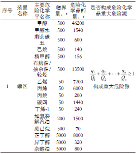 表1 危險化學品重大危險源構(gòu)成