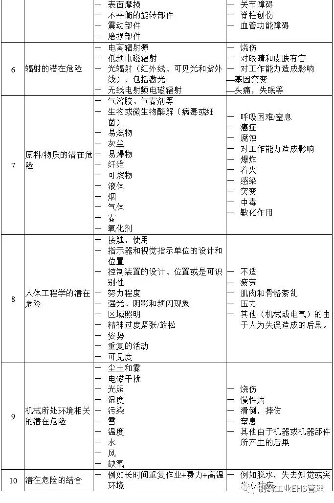 管理人員應(yīng)發(fā)現(xiàn)相關(guān)的SHE影響和潛在危險(xiǎn)并對(duì)其所相關(guān)的所有業(yè)務(wù)活動(dòng)進(jìn)行風(fēng)險(xiǎn)評(píng)估。所應(yīng)考慮的潛在危險(xiǎn)和影響應(yīng)至少包括以下: