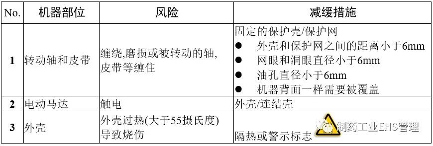 有一個(gè)一般化風(fēng)險(xiǎn)評(píng)估可用于待評(píng)估的簡(jiǎn)單機(jī)器(見(jiàn)附錄2)。對(duì)于機(jī)器的每一項(xiàng)具體的風(fēng)險(xiǎn),風(fēng)險(xiǎn)和對(duì)應(yīng)的緩和措施都有相關(guān)描述。