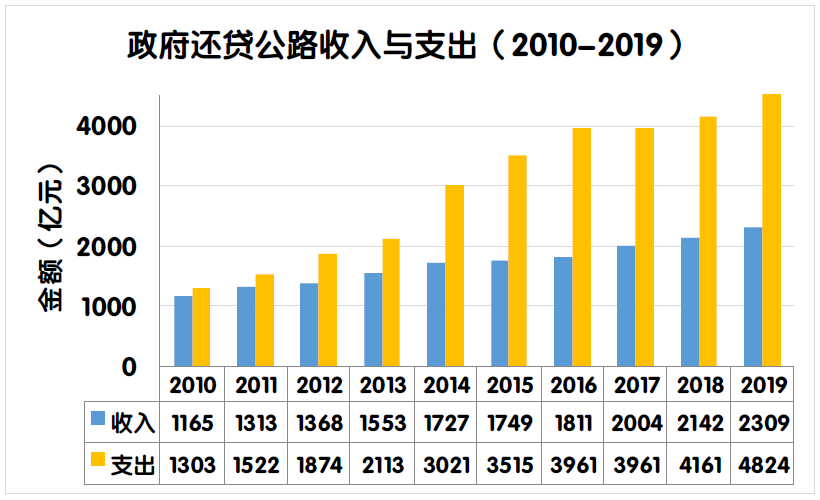 2019年度全國收費公路通行費收支缺口比上年增加780.4億元,增長19.2%。主要原因是2019年度通行費支出總額較上年增加。一是2019年度部分收費公路債務到期,償還債務本金支出較上年凈增525.9億元;二是隨著債務規(guī)模的擴大,償還利息支出凈增169.0億元;三是新建ETC門架系統(tǒng)、改造ETC車道、安裝入口不停車稱重檢測系統(tǒng)、省界收費站正線設施改造工程等支出。