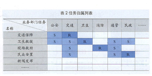基于情景應對的任務清單逐步清晰以后,可以通過業(yè)務部門的座談分析,明確各項任務的歸屬,得出表2所示的任務歸屬列表(R表示負責、S表示支持)。實踐表明,該項工作將會有效查漏補缺,優(yōu)化既有應急機制,彌補體制上的條塊分割與碎片化問題。