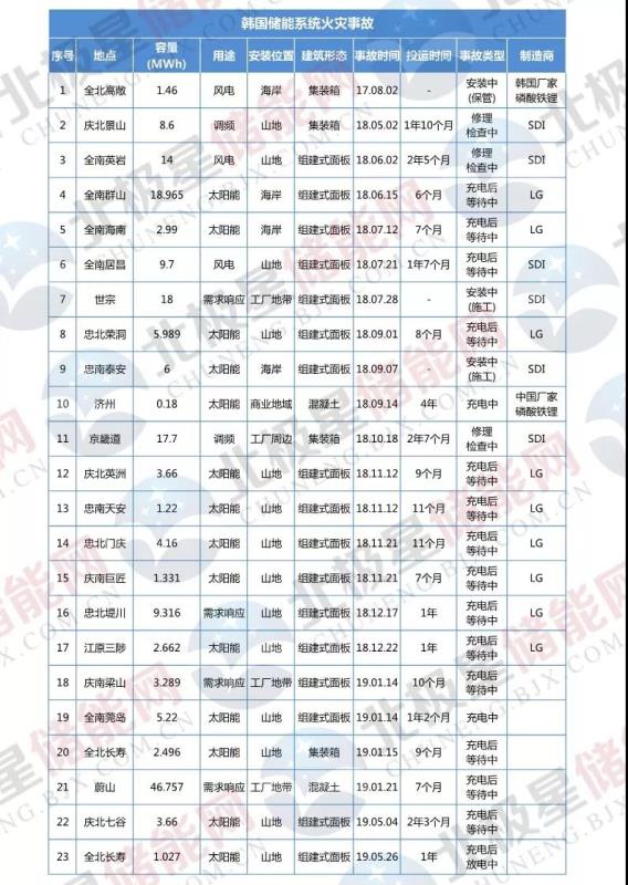 韓國政府公布23起儲能電站火災事故調(diào)查結(jié)果 并提出四大改善措施