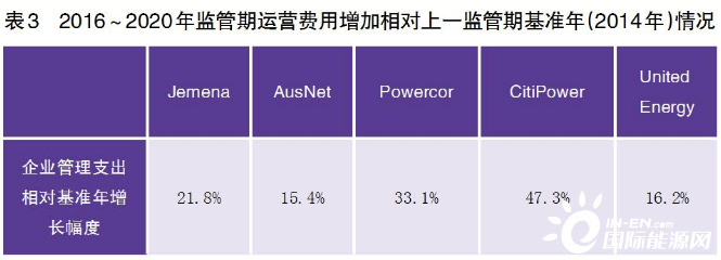 加強(qiáng)輸電設(shè)備防山火管理,也增加了各配電公司的運營費用支出。維多利亞州5家配電公司2016~2020年監(jiān)管期運營費用增加相對上一監(jiān)管期基準(zhǔn)年(2014年)情況見表3。增加原因除了勞動力成本的上漲外,主要就是履行防山火義務(wù)增加的運營費用。
