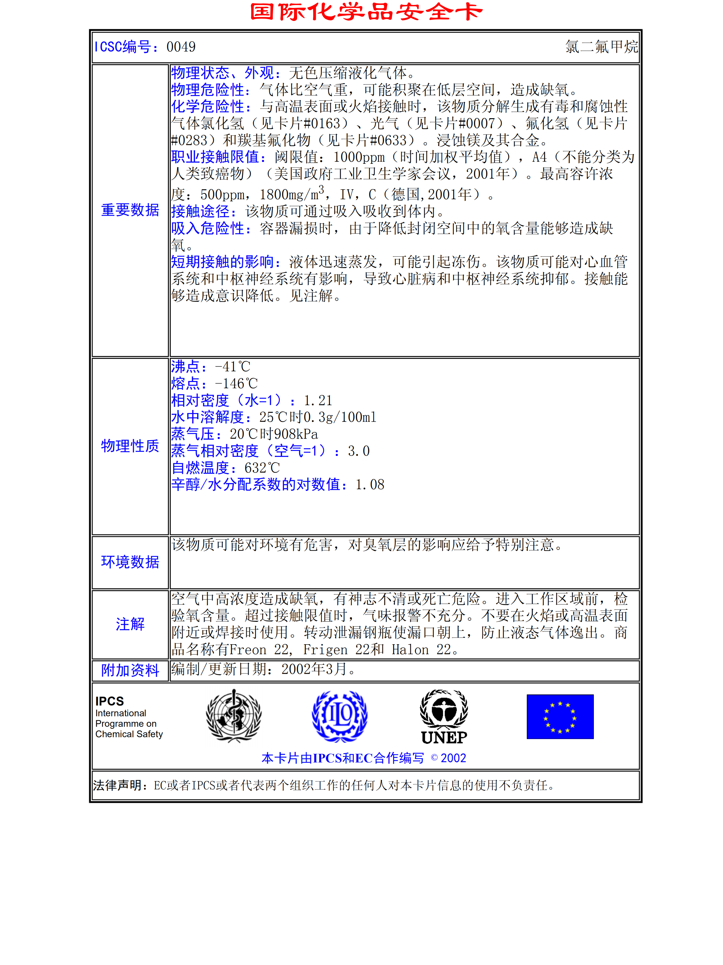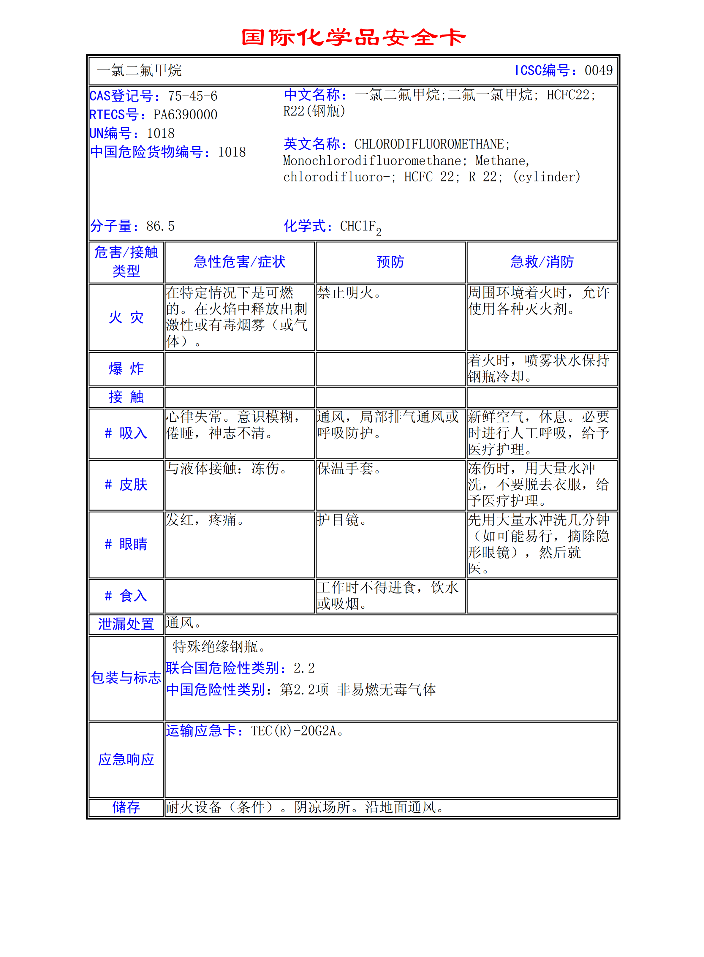 一氯二氟甲烷MSDS