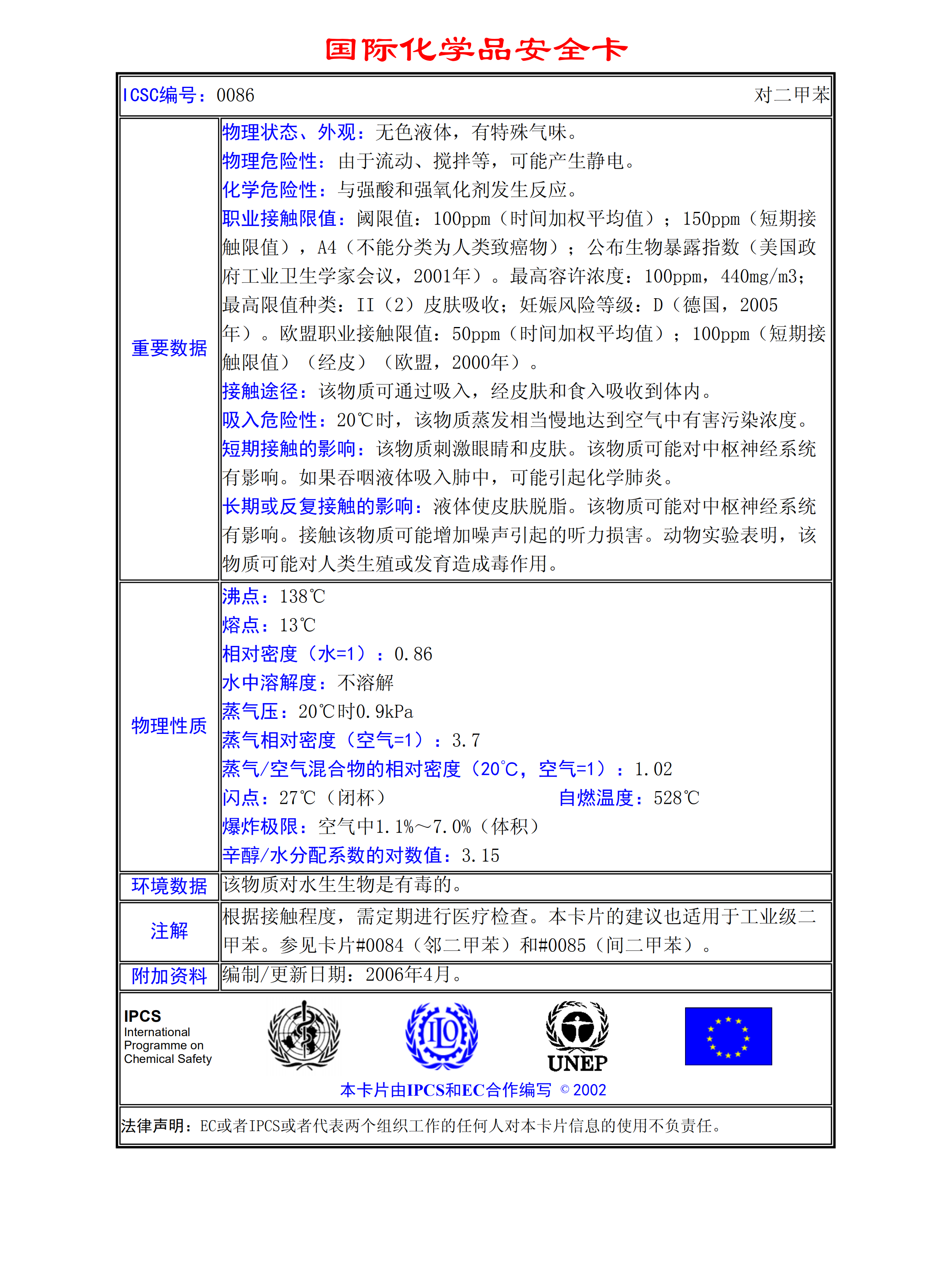 對二甲苯MSDS