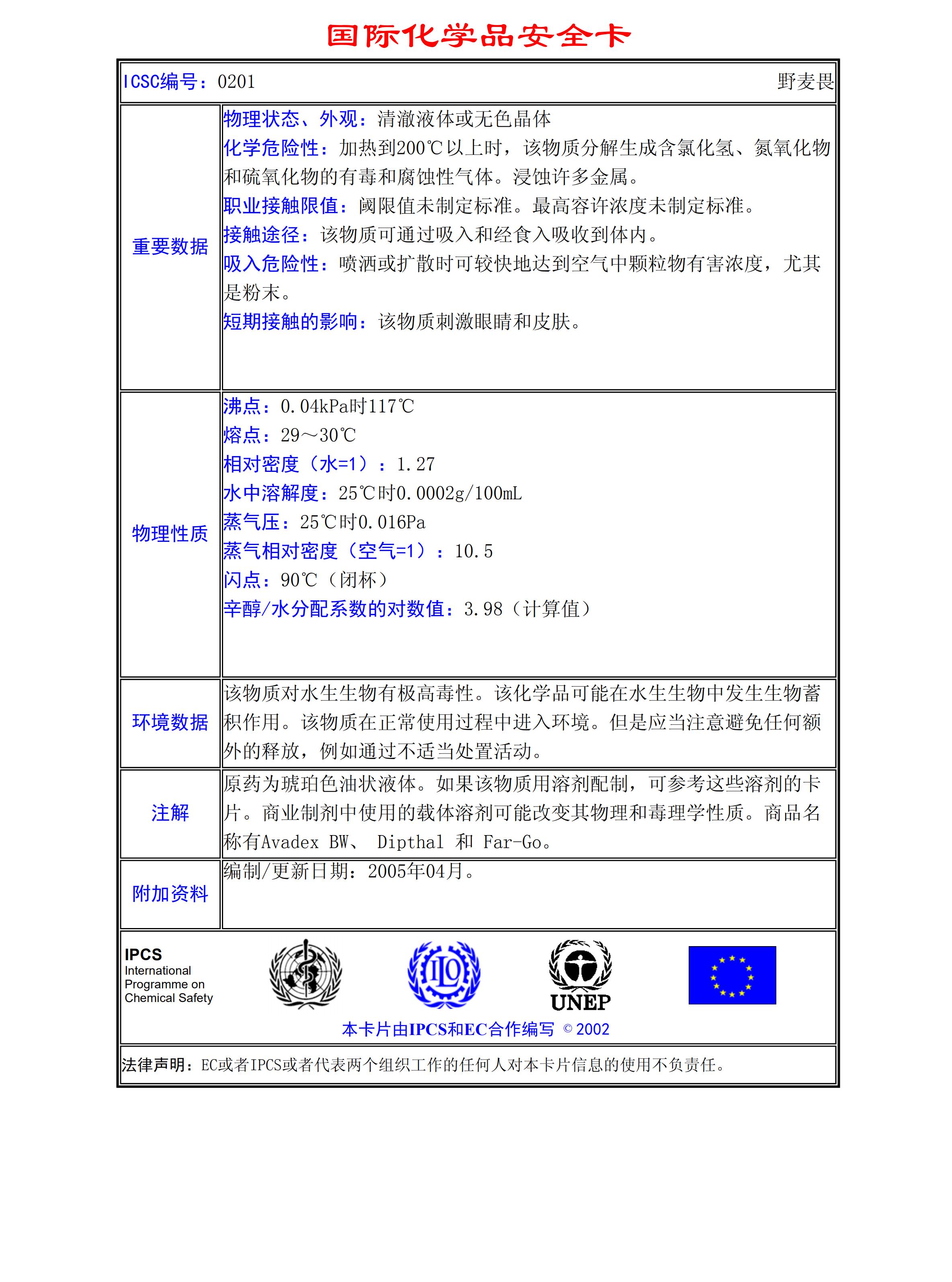 野麥畏MSDS