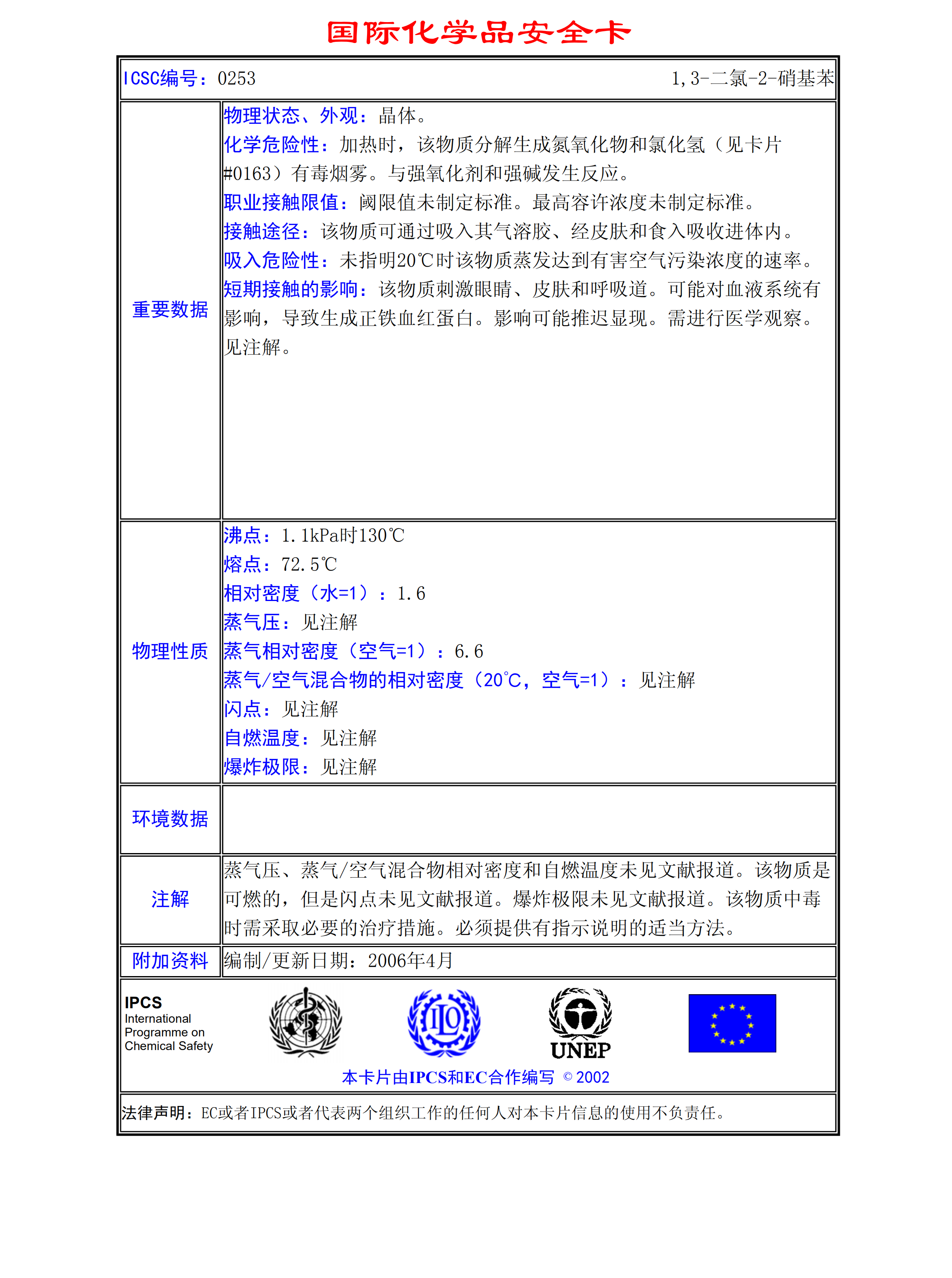 1,3-二氯-4-硝基苯MSDS