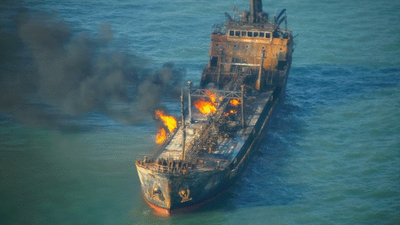 國家危險化學(xué)品應(yīng)急救援舟山隊(duì)緊急馳援海上船只相撞火災(zāi)事故