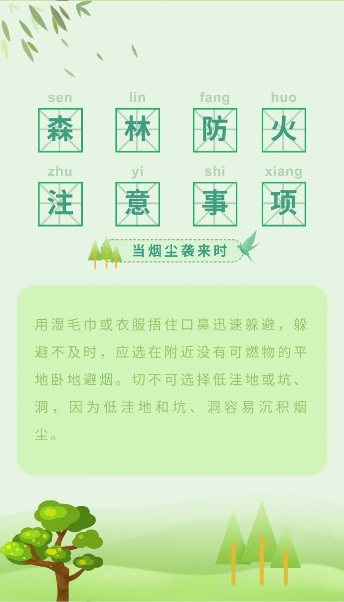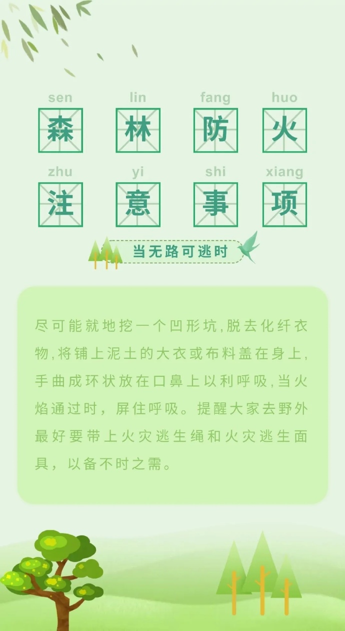 步入三月份以來,全國各地氣溫回升,物種植被干燥,火險等級逐步升高,給森林防火滅火帶來嚴峻考驗。那么,普通群眾遇到森林火災(zāi)時,該如何最大限度的減小森林火災(zāi)對自身的危害呢?這些森林火災(zāi)基本逃生方法,一定要記住哦?。ǜ拭C省森林消防總隊平?jīng)鲋ш狇v黃陵分隊:倪騰飛)