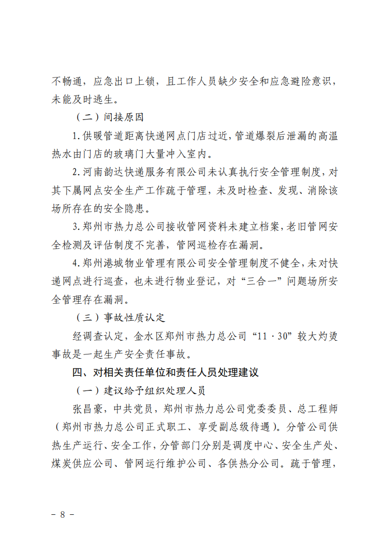 河南鄭州金水區(qū)鄭州市熱力總公司“11·30”較大灼燙事故調(diào)查報(bào)告