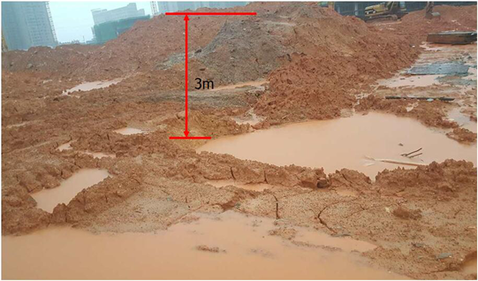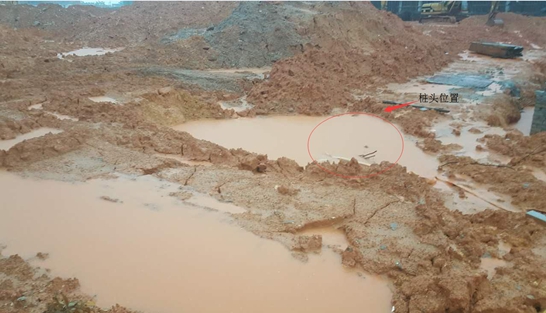 距離事發(fā)集水井南側(cè)約2米處有開(kāi)挖土方堆填的土堆,土堆高約3m,坡度約為45°,面積約50*40㎡。(如下圖)
