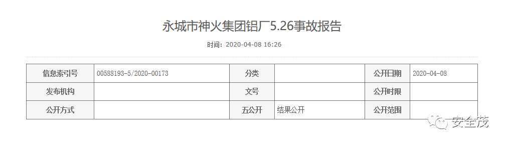 永城市人民政府神火集團(tuán)鋁廠“05·26”事故調(diào)查組