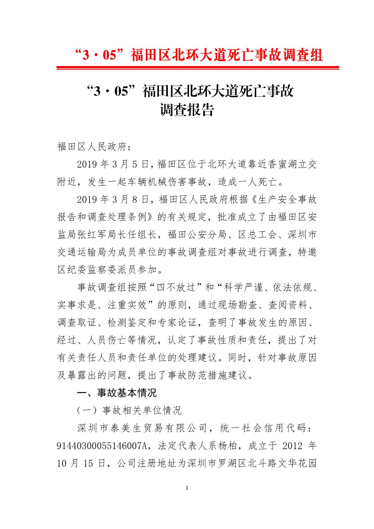 “3.05”福田區(qū)北環(huán)大道死亡事故調(diào)查報(bào)告