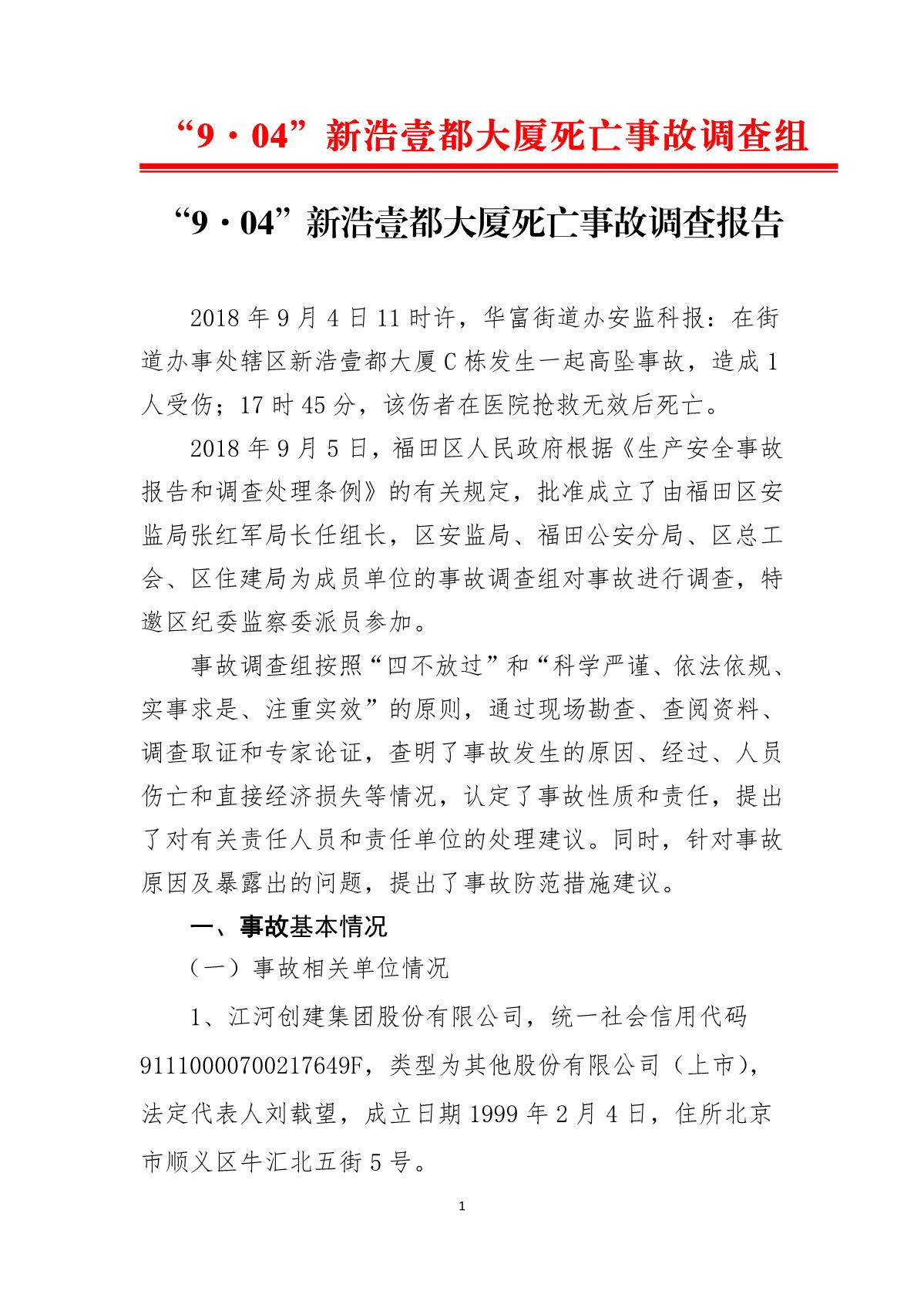“9.04”新浩壹都大廈死亡事故調(diào)查報告