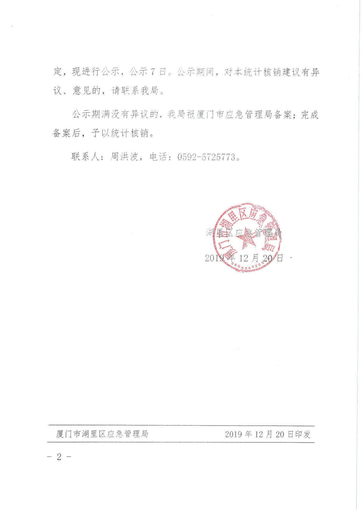 湖里區(qū)應(yīng)急管理局關(guān)于建議對“4·8”廈門德易達土石方有限公司亡人事故進行統(tǒng)計核銷的公示
