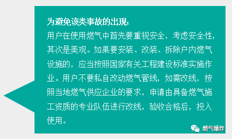 2012年7月27日重慶奉節(jié)縣一居民家發(fā)生天然氣意外泄漏事故,發(fā)生事故的居民家中所有家具和電器都被燒毀,窗戶的玻璃已被震爛。爆炸造成一家6人燒傷,最終一人搶救無(wú)效死亡。據(jù)網(wǎng)上報(bào)道爆炸是由于天然氣管道與輸氣軟管之間存在縫隙,導(dǎo)致天然氣泄漏引發(fā)的。在該戶家中,發(fā)現(xiàn)新買的燃?xì)庠罹?,是個(gè)三無(wú)產(chǎn)品。該戶的燃?xì)夤艿?,是由兩根軟管接起?lái)的,一根軟管不夠長(zhǎng),中間還用一根硬塑料管連了起來(lái),還使用了膠水來(lái)粘接,這是非常危險(xiǎn)的作法,連接的塑料管是硬的,天然氣完全可能因連接處泄漏出來(lái)。也許是用戶點(diǎn)了火,也許只是開(kāi)了某一種電器的開(kāi)關(guān),就引起了天然氣爆炸,隨后的火焰擴(kuò)散,屋內(nèi)東西全部燒毀。