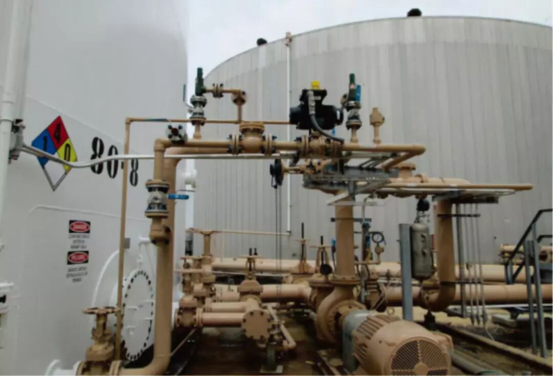 80-8號儲罐是一個8萬桶的地面常壓儲罐,于1972年在ITC Deer Park碼頭投入使用。該罐租給了另一家公司用于石腦油儲存和石腦油-丁烷混兌作業(yè)。ITC使用外部管道和設備(管匯)將丁烷注入石腦油產(chǎn)品(圖3),以增加燃料產(chǎn)品的辛烷值。