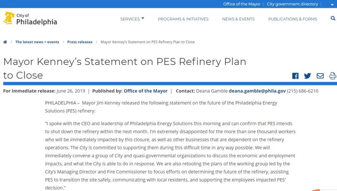 爆炸發(fā)生之后一周,費城能源解決方案煉油廠(PES)計劃永久關(guān)閉