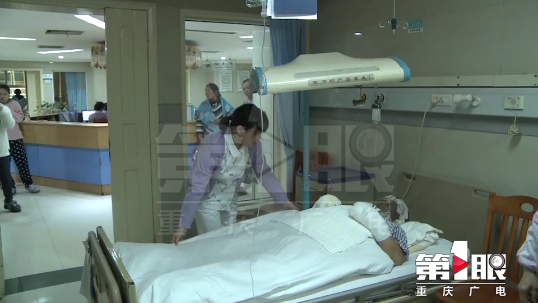 大家用剪刀把張紹龍著火的衣服脫了下來,由于燒傷嚴重,張紹龍被送往了西南醫(yī)院燒傷科治療。經(jīng)醫(yī)生診斷,張紹龍全身燒傷面積達9%,深二度燒傷,受傷最嚴重的部位是臉和雙手,需手術(shù)植皮治療。