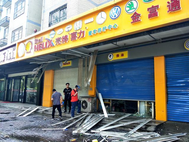 馬路及馬路對(duì)面均有大量玻璃散落在地。