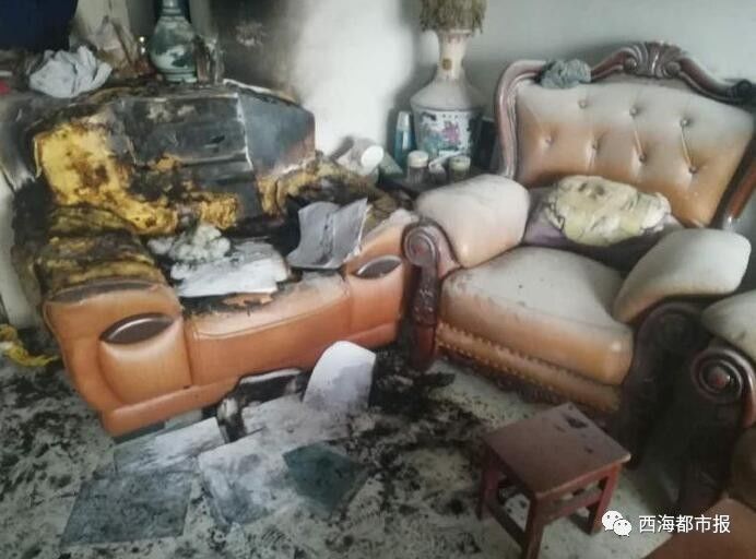 走進(jìn)事發(fā)的住戶家,屋里一片狼藉,沙發(fā)、電視機(jī)、洗衣機(jī)、電燈開(kāi)關(guān)等物品被燒,臥室和客廳的玻璃碎了。家里養(yǎng)的小貓蜷在陽(yáng)臺(tái)上一動(dòng)不動(dòng),它的嘴巴在流血,胡子和尾巴被燒。