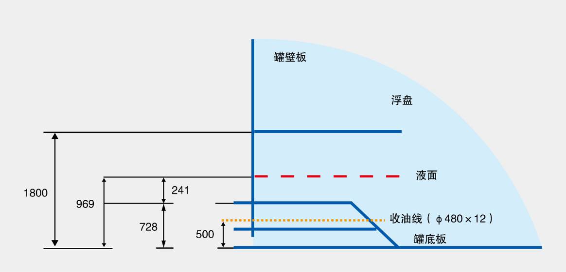 圖1  875#收油前罐內(nèi)浮盤與液面間的距離